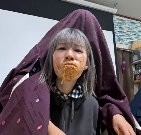 わたくし、でいはうすつぶらの管理者の大橋奈央です!管理者ではありますが、こんなに必死に焼きそばを食べたりハッピーな髪色にしちゃう私です💦(笑)