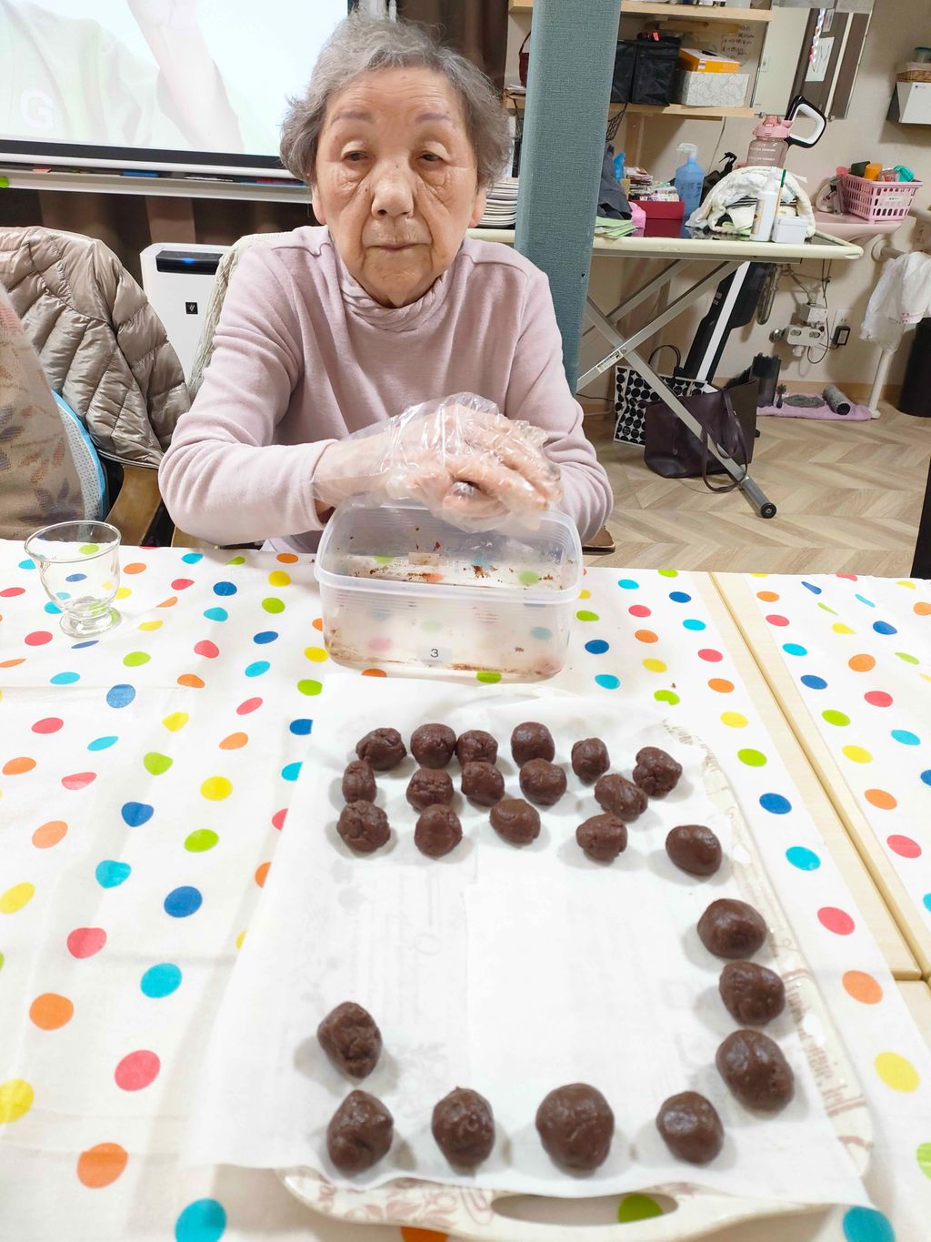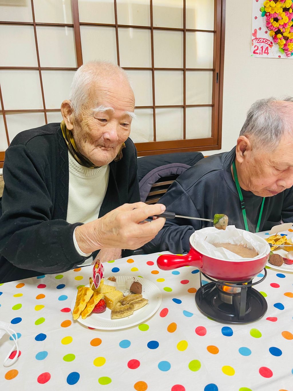 バレンタインは朝からトリュフを作ってもらいました~🥰ココアパウダーや抹茶パウダーをかけてとっても可愛い見た目になりました🎵あとは熱々のチョコレートフォンデュも一緒に召し上がってもらいました✨皆さん甘いものが大好きなのでとってもにっこりでした😊