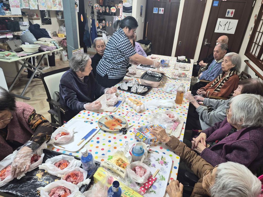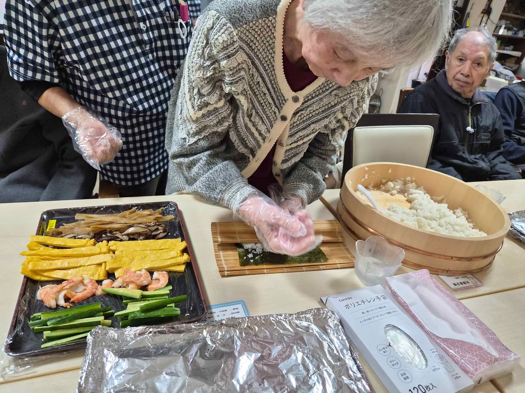朝は皆さんで恵方巻を作ってイワシフライと鬼除け汁と一緒に召し上がって頂きました